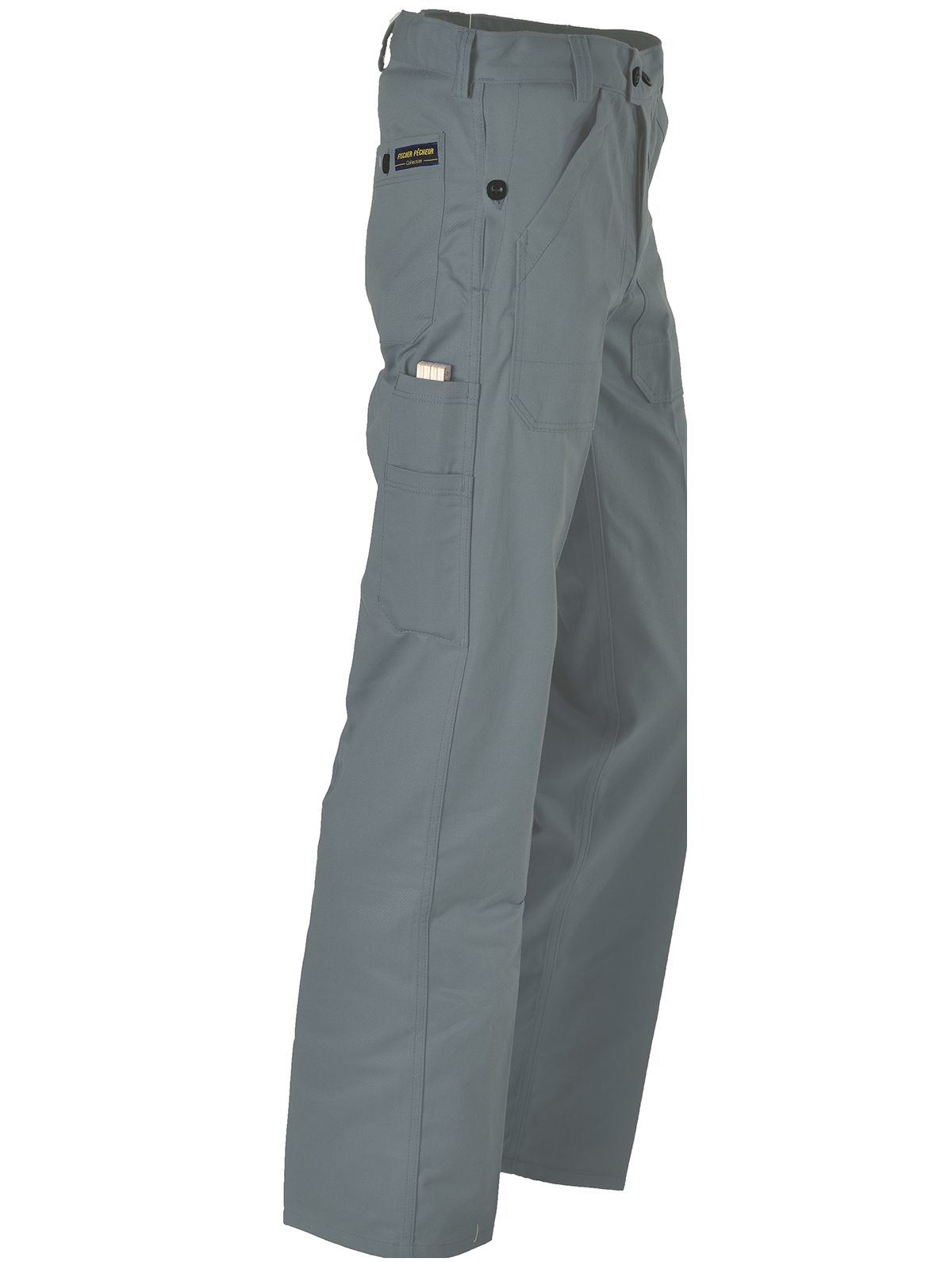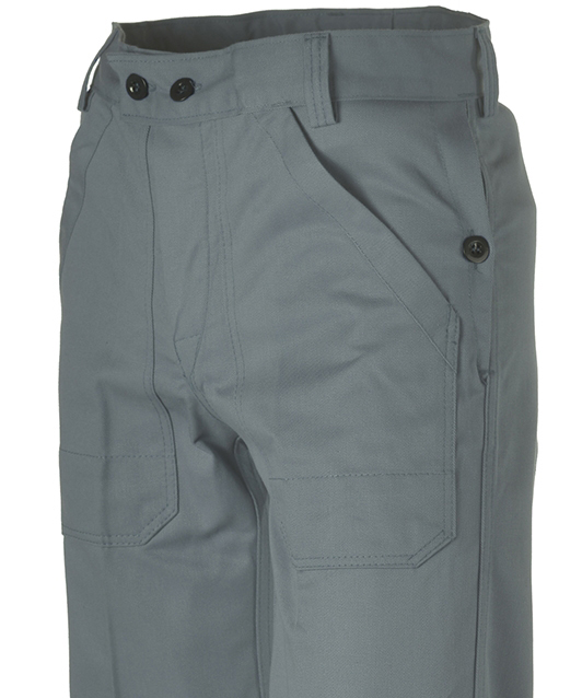 Traditionelle, bequeme und robuste Arbeitshose für Handwerk und Landwirtschaft, aus 100% Baumwolle. Die Arbeitshose verfügt über 2 aufgesetzte, verstärkte Vordertaschen, Gurtschlaufen, 2 seitliche Durchgriffe mit Knopfverschluss, 1 Gesässtasche mit Knopfverschluss und 1 Metertasche rechts, zweiteilig. Qualität von Fischer Pêcheur Berufskleider aus Triengen.
