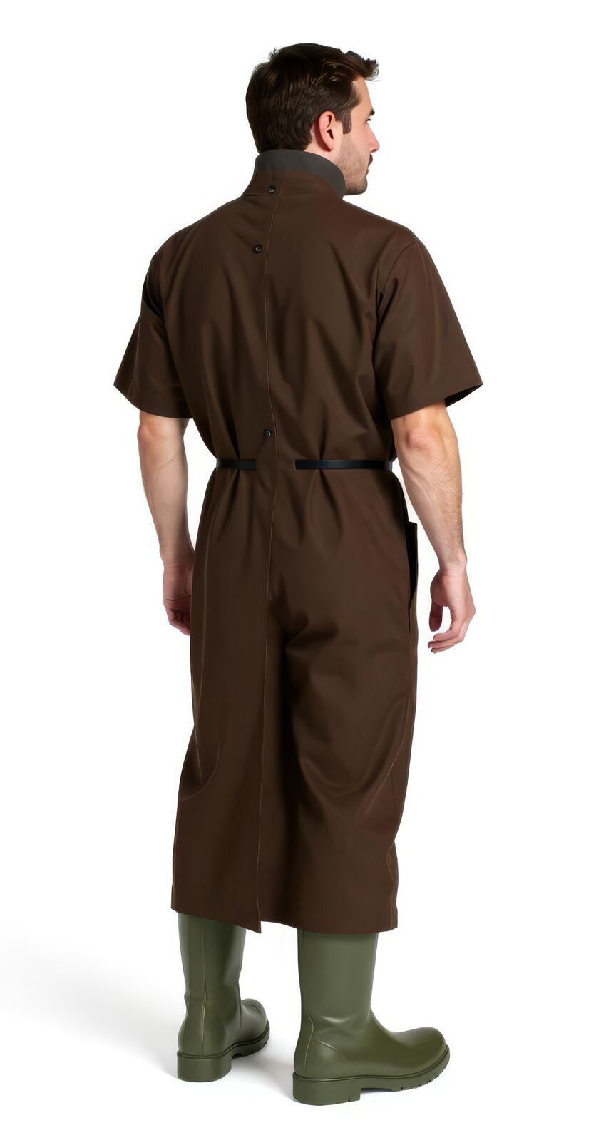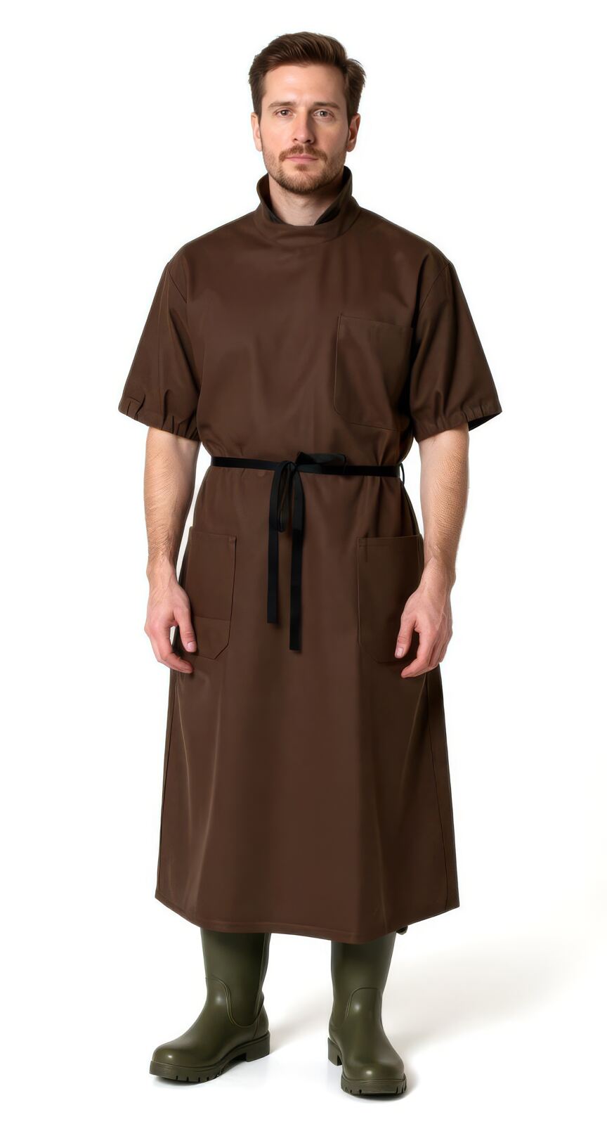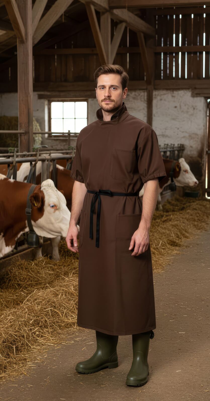 Dieser Spezial-Mantel ist aus robustem, verstärktem Baumwollstoff gefertigt und speziell für den professionellen Einsatz entwickelt. Mit Stehkragen, Brusttasche und zwei aufgesetzten Vordertaschen bietet er praktische Funktionalität im Arbeitsalltag. Kurzärmel mit Gummiborden, ein Rückenverschluss mit Druckknöpfen sowie Bändel sorgen für optimalen Sitz und hohen Tragekomfort. Mit einer Länge von 130 cm ist er die ideale Schutzkleidung für den Veterinärbereich.