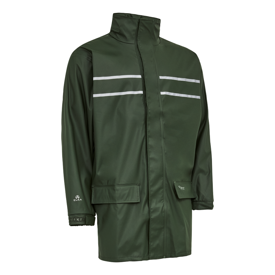 ELKA rain jacket olive PU with reflective stripes